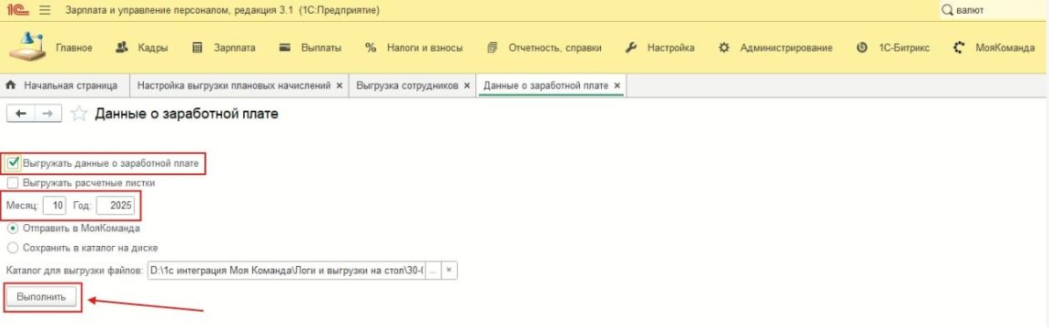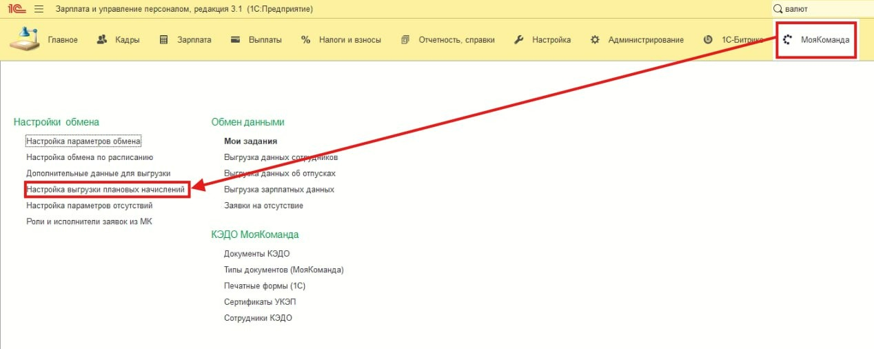 Для того чтобы выгрузить информацию о плановых начислениях из 1С в МояКоманда, необходимо: