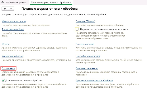 3. Выбираем «Печатные формы, отчеты и обработки».