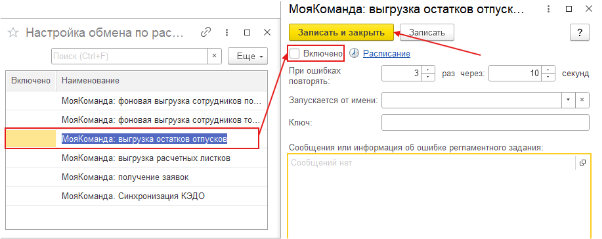 1. Отключите выгрузку остатков отпусков по расписанию, если она была включена, на период планирования будущих отпусков сотрудниками.