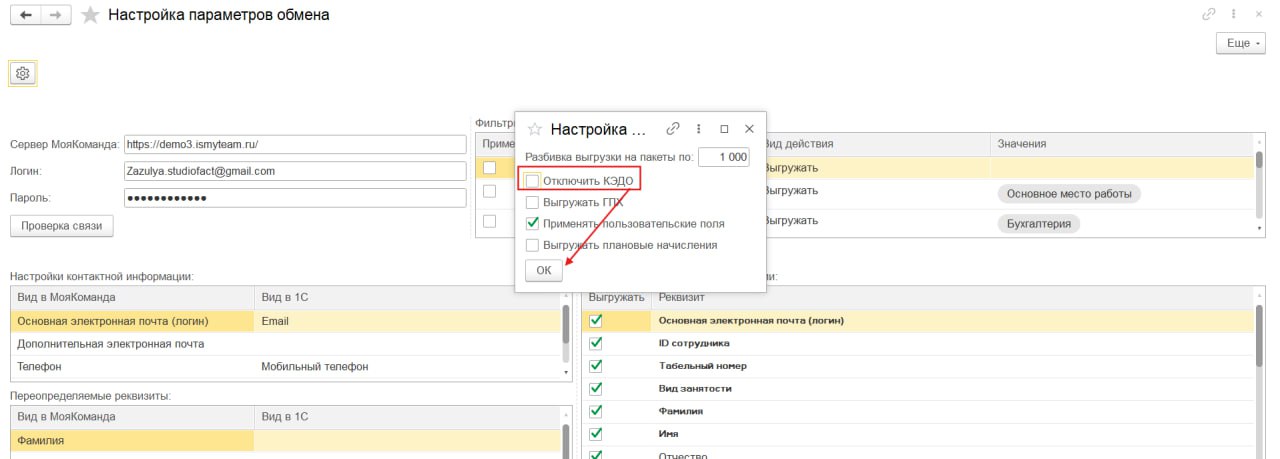 ¶ 2 Настройка обмена между 1С и сервером МояКоманда