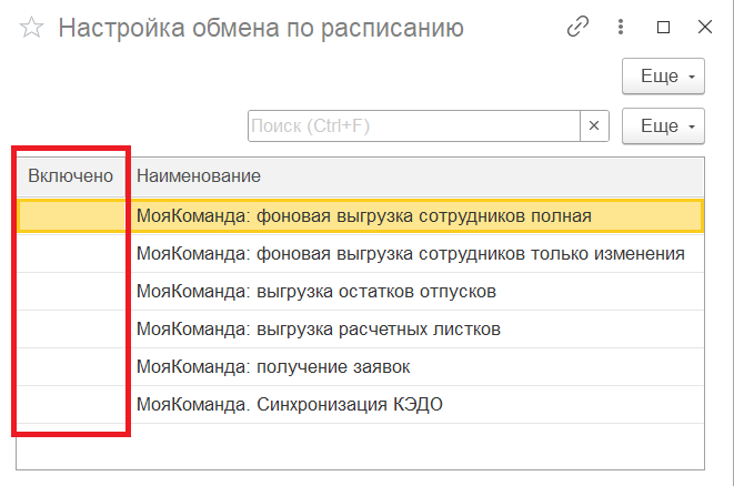 Перейти в раздел “МояКоманда” и выбрать пункт “Настройки параметров обмена”