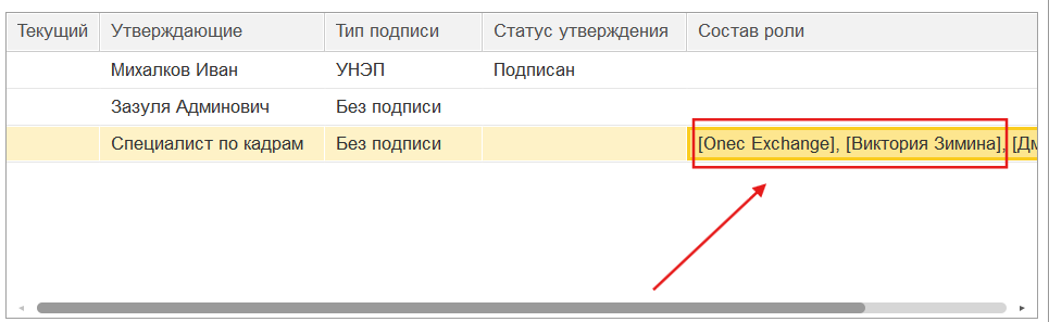 Важно! Согласовать или отклонить можно только тем пользователем из маршрута, который связан с этой базой 1С. Если сотрудник в маршруте согласования находится в квадратных скобочках, значит он не связан с этой базой 1С.