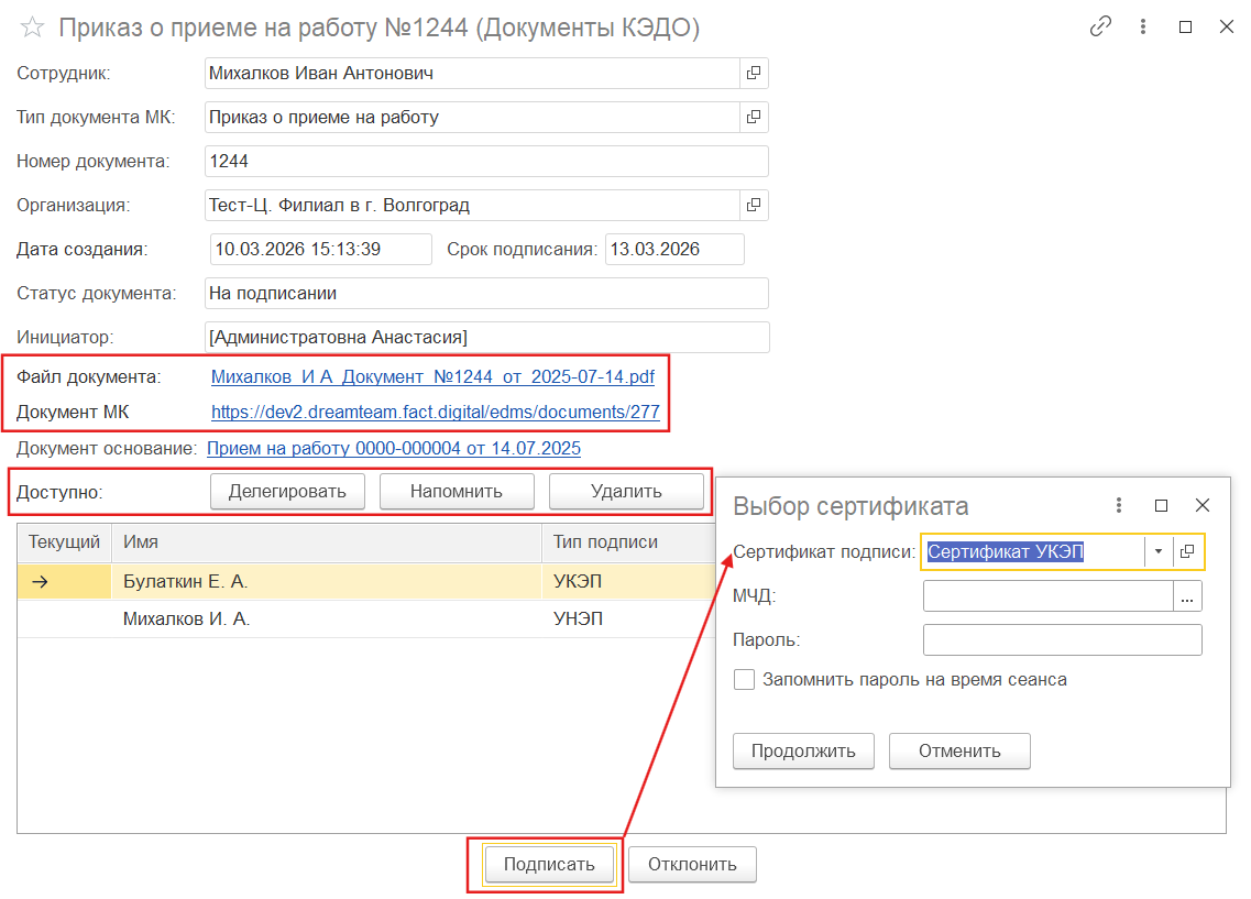Если у Вас подключено КЭДО, необходимо выполнить следующие действия: